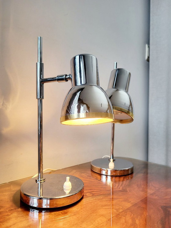 Juego de lámparas de mesa cromadas de mediados de siglo, S.A. Boulanger, años 70