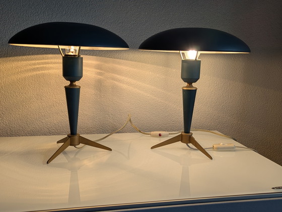 Estás viendo un conjunto único de dos lámparas Louis Kalff Bijou idénticas. Un bello ejemplo de diseño moderno de mediados de siglo. Estas lámparas irradian un estilo refinado.