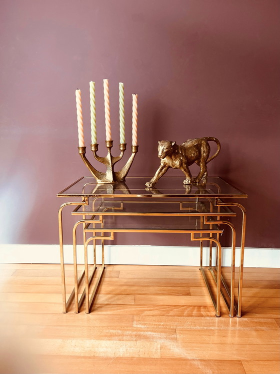Estas mesitas auxiliares italianas estilo años 70 son una verdadera joya. Su precioso metal dorado y su elegante diseño curvo las hacen únicas y especiales. 😍