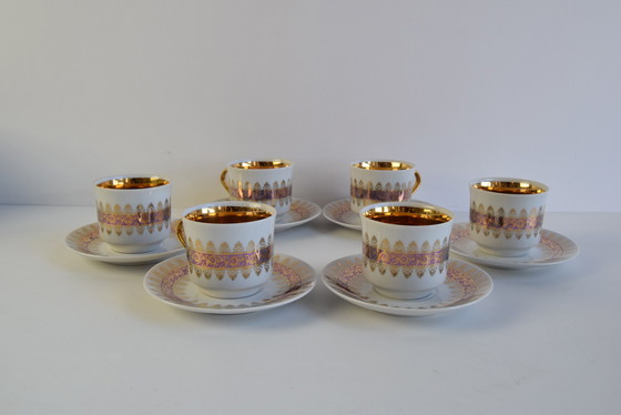 Vendo juego de tazas Epiag Laura, hermoso diseño retro, interior de la taza bañado en oro, estado original, tamaño de taza: H-6 W-7 D-9, tamaño de platillo: H-2 W-13 D-13, VK-1299.