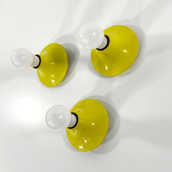 Juego de tres lámparas de pared Teti amarillas de Vico Magistretti para Artemide, años 70