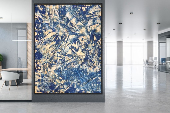 El cuadro se envía en una caja de cartón resistente como lienzo enrollado (sin bastidor). La idea es que usted mismo pueda entregarlo a un enmarcador, ahorrándose así los gastos de envío de varios cientos de euros por un cuadro de este tamaño. Los gastos de envío son sólo 29 euros. El enmarcado puede hacerse según sus deseos personales.