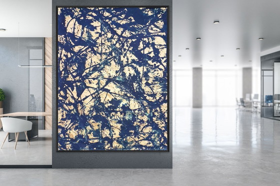 El cuadro se envía en una caja de cartón resistente como lienzo enrollado (sin bastidor). La idea es que usted mismo pueda entregarlo a un enmarcador, ahorrándose así los gastos de envío de varios cientos de euros por un cuadro de este tamaño. Los gastos de envío son sólo 29 euros. El enmarcado puede hacerse según sus deseos personales.