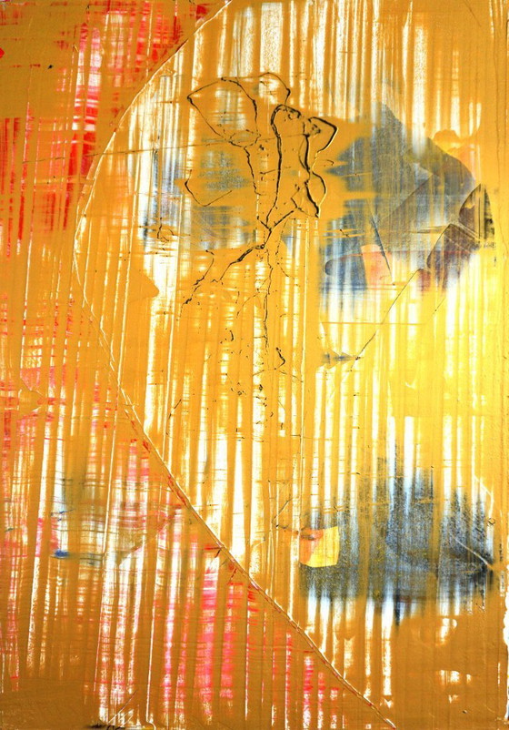 Pintura abstracta sobre madera del artista austriaco Jürgen Angeler. Pintado con pintura acrílica de alta pigmentación.