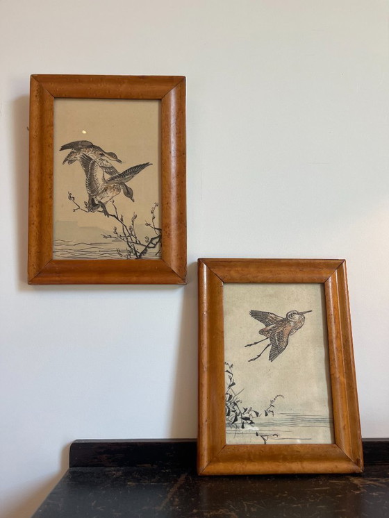 Obras de arte japonesas enmarcadas de pájaros y flores - se venden juntas