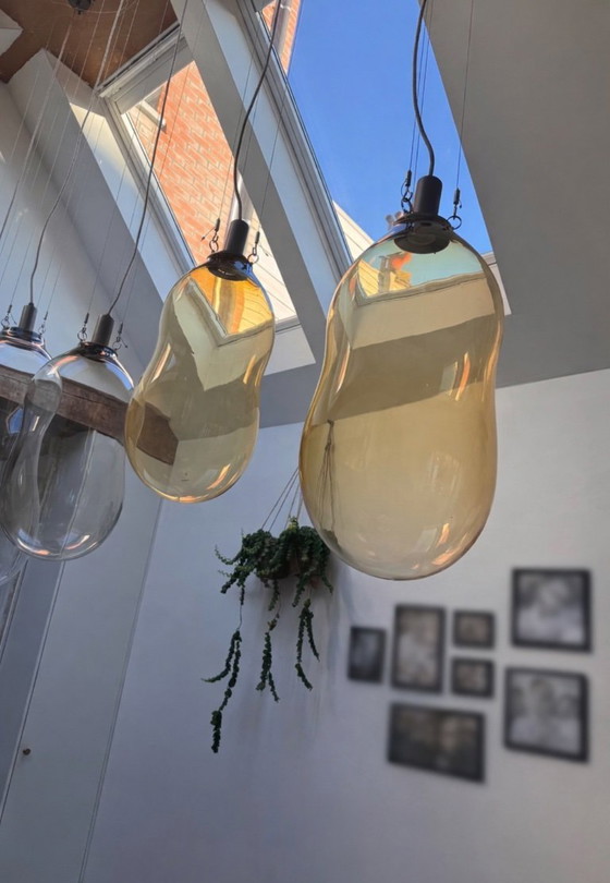 Se venden dos lámparas The Big Bubble del diseñador Alex Dewitte, de color amarillo oscuro transparente.