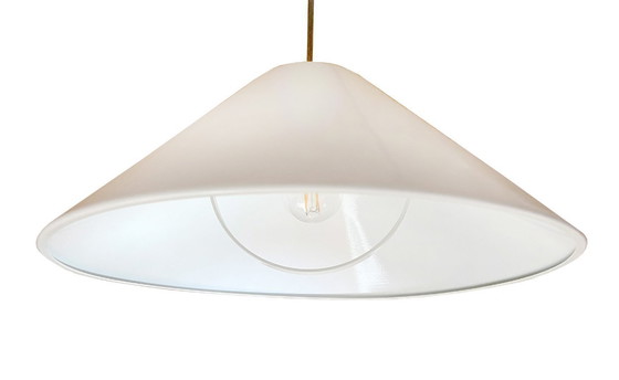 Esta elegante lámpara colgante de diseño italiano de los años 80 combina iluminación funcional con un diseño atemporal. Su forma geométrica y depurada la convierte en la pieza perfecta para cualquier interior contemporáneo, garantizando una distribución uniforme de la luz en toda la habitación. Fabricada en metal con acabado lacado blanco, está impecable, sin arañazos ni marcas. Solo el cable de alimentación negro, revestido de tela, muestra un ligero desgaste.