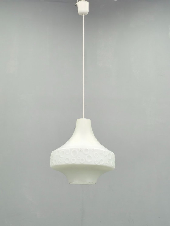 Lámpara colgante de vidrio opalino checoslovaco con relieve de burbujas, década de 1970