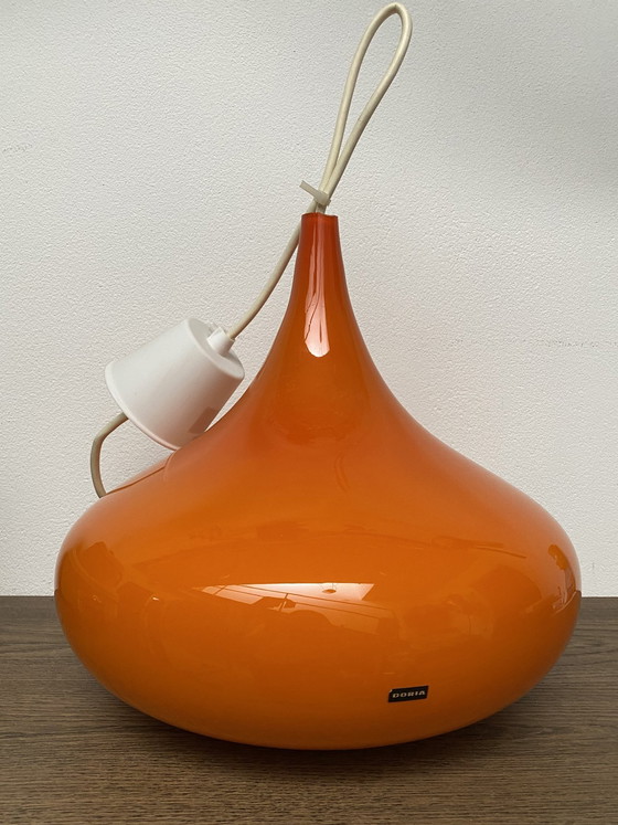 Lámpara colgante Doria de cristal naranja de mediados de siglo