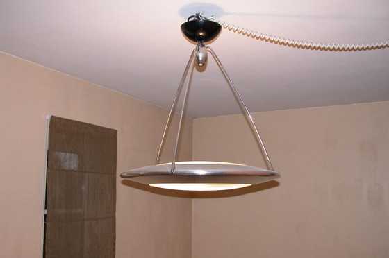 Ilumina tu espacio con la lámpara colgante Flos Mira S, una obra maestra del diseño minimalista. Esta elegante lámpara de la reconocida marca italiana Flos, conocida por sus icónicas soluciones de iluminación, combina una estética industrial con una luz cálida y difusa. Su elegante acabado metálico plateado la convierte en la opción ideal para interiores contemporáneos, ya sea suspendida sobre una mesa de comedor o una isla de cocina.