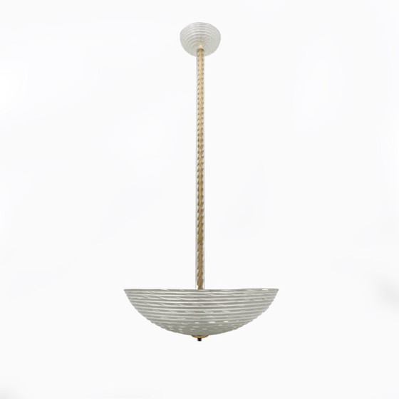 Lámpara colgante italiana de cristal de Murano Art Déco de Ercole Barovier "Pulegoso", años 30