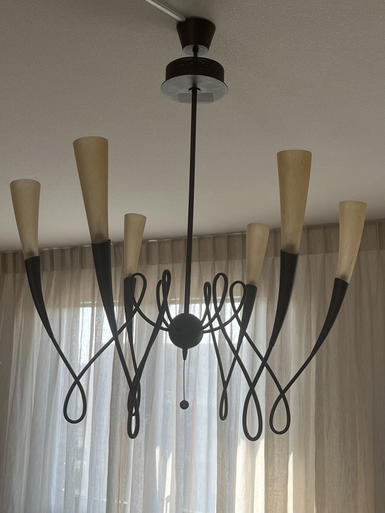 La combinación de brazos metálicos y pantallas de cristal crea un hermoso juego de luces que ilumina cualquier estancia. Materiales de alta calidad, como el metal y el cristal resistentes, garantizan una larga vida útil. Su diseño moderno se integra a la perfección en interiores contemporáneos.