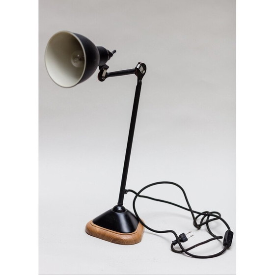 Lámpara de Bernard Gras de metal negro mate y base de roble. Diseño clásico.