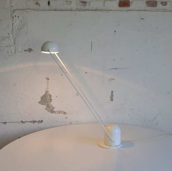 Elegante lámpara de escritorio estilo era espacial de Philips, de la década de 1970. Esta lámpara combina un diseño retro con funcionalidad moderna. Fabricada en metal y plástico, presenta un elegante color blanco. Perfecta para un espacio de trabajo o estudio con estilo.