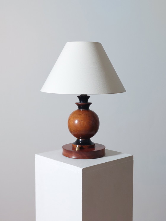 Lámpara de mesa Art Déco de madera torneada, lámpara de mesa, decoración esférica.