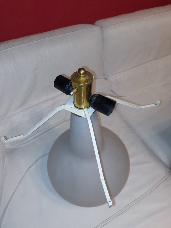 Esta lámpara es precursora de la 1853/1 de Fontana Arte. Tiene un interruptor doble y carece de pantalla, que puede ser de vidrio u otro material. Tanto la base como la parte superior son de latón. Es muy poco común, pero se puede encontrar online en PAMOMO.