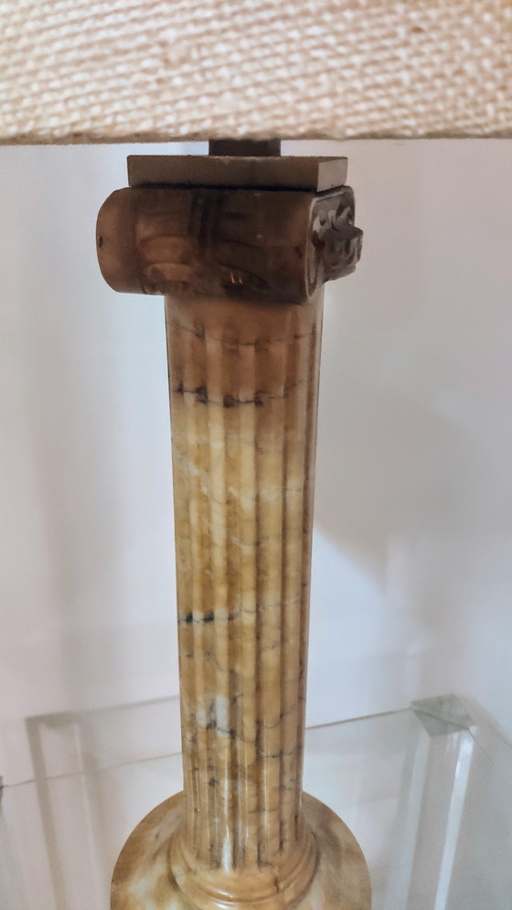 Lámpara de mesa de estilo griego (souvenir del Grand Tour) de mármol macizo de los años 50/60. En excelente estado considerando su antigüedad. La lámpara se entrega sin pantalla, pero se puede incluir sin coste adicional.