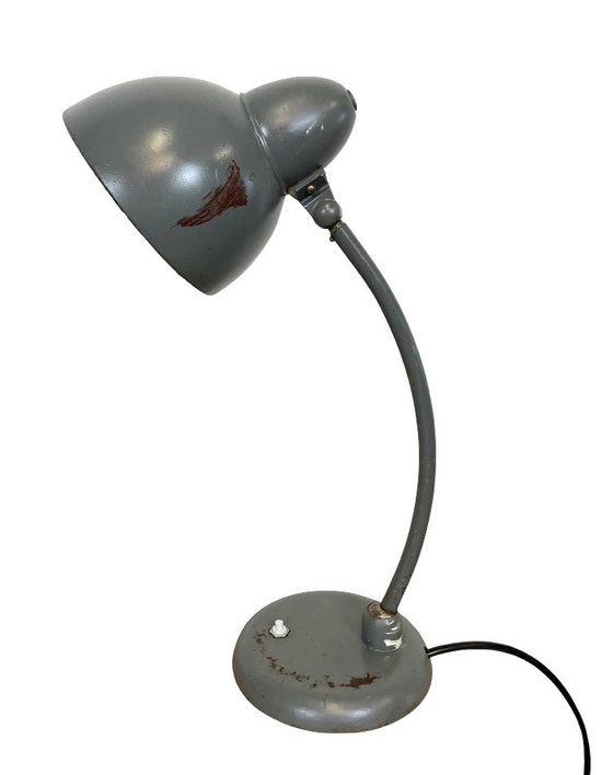 Lámpara de mesa industrial Bauhaus gris, década de 1930