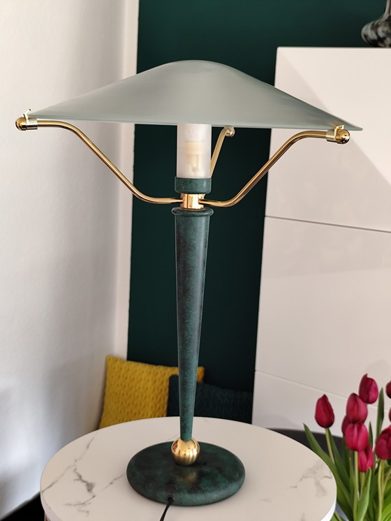Lámpara de mesa posmoderna "Seta" de Wofi – latón y cristal – década de 1990