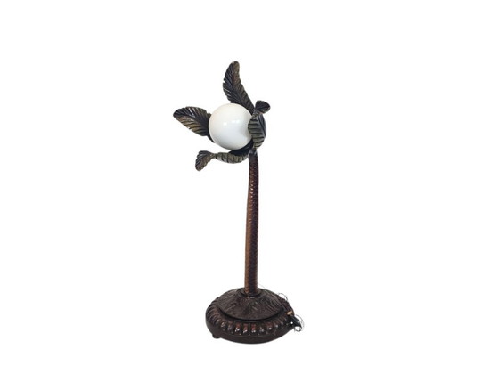Impresionante lámpara de pie con forma de palmera. Tanto las hojas como la base presentan un acabado elegante y elegante. Este tipo de lámpara estuvo muy de moda en los salones italianos de la década de 1950. La lámpara ha sido probada y funciona correctamente.