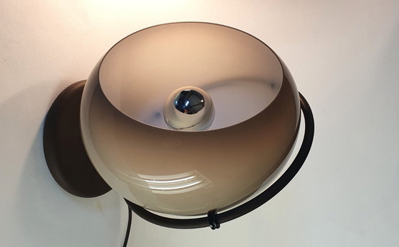 Lámpara de pared vintage con pantalla marrón ahumado. La lámpara no tiene marca, posiblemente de fabricación holandesa, y es de Dijkstra, Herda o Gepo.