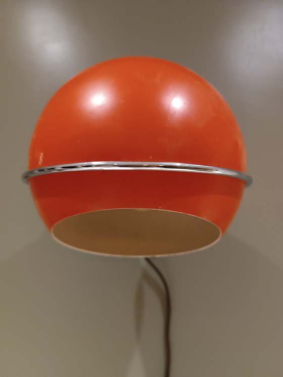 Lámpara de pared con forma de globo ocular naranja +++ Diseño típico de la era espacial +++ Fabricada por Gepo (hermanos Posthuma) en Ámsterdam +++ Años setenta +++ Usada: en un punto, la pintura de la esfera está ligeramente dañada. Pero gira la esfera a tu antojo y no lo notarás.