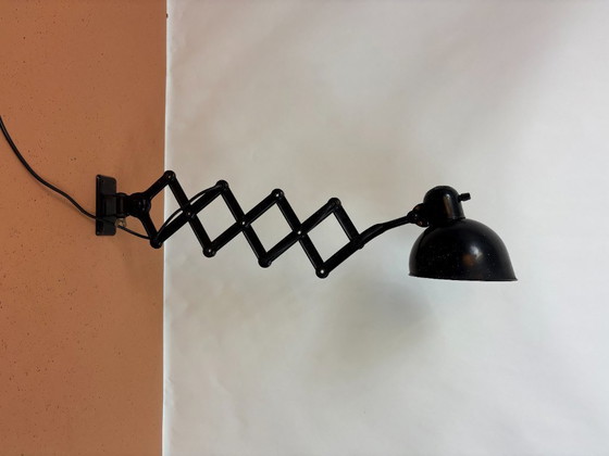 Lámpara de pared con brazo de tijera 19302, diseñada por Christian Dell para Kaiser Idell en la década de 1930.