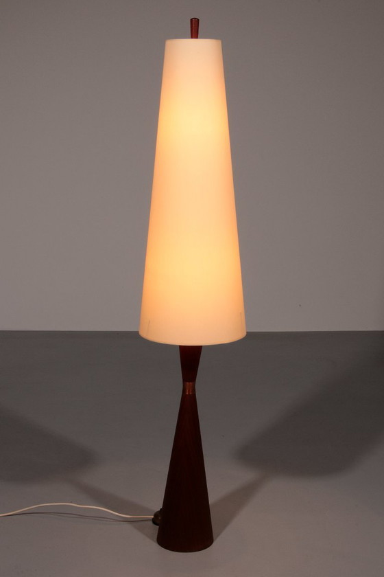 Adéntrese en el refinado mundo de la elegancia de mediados de siglo con esta lámpara de pie vintage de teca de la década de 1960, una impresionante pieza diseñada por Parker Knoll, Dinamarca. Fabricada con precisión y estilo, la lámpara cuenta con una base y un pie de madera de teca maciza, mostrando los tonos cálidos y las vetas naturales que definían la artesanía escandinava de la época. Su original pantalla de tela añade un suave resplandor ambiental, creando una atmósfera acogedora que combina a la perfección el encanto vintage con los interiores modernos. Esta lámpara de pie no es sólo un accesorio de iluminación, es una declaración atemporal de la historia del diseño, lista para elevar su hogar con carácter y autenticidad.