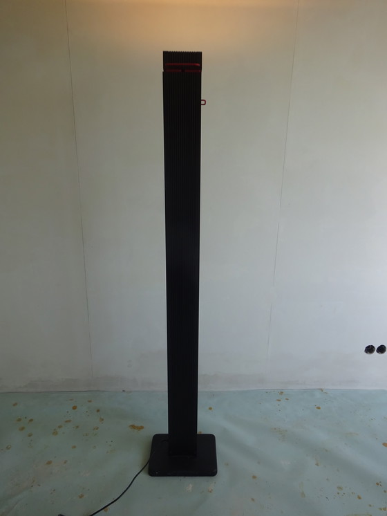 Preciosa lámpara de pie diseñada por Sergio Carpani para Stilnovo en la década de 1980. Lámpara de pie de diseño elegante. Colores: negro con rojo. La lámpara es regulable con interruptor que está en el soporte Soporte rojo . Ajustable hasta 90 grados, también apuntando al techo. La lámpara está en muy buen estado vintage. Dimensiones: Altura180 cm Anchura14 cm Profundidad7 cm.