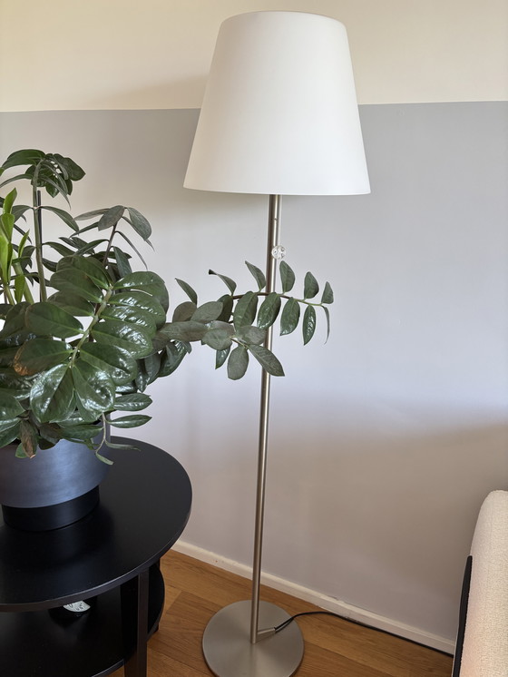 Esta lámpara de pie Vamp Terra de Tronconi SRL es una solución de iluminación elegante y moderna para cualquier habitación. La lámpara tiene una elegante base de metal plateado y una clásica pantalla textil blanca, que le confiere un aspecto liso y elegante. La lámpara está diseñada para proporcionar una iluminación ambiental, perfecta para crear una atmósfera acogedora en su espacio vital. Su diseño minimalista la convierte en una pieza versátil que se adapta a una gran variedad de estilos de interior.