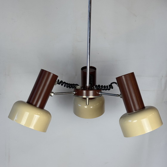 Lámpara colgante vintage de fabricación checoslovaca por Jozef Hurka para Napako años 60. Fabricada en metal (aluminio y acero). Está en muy buen estado original sin algunos signos de uso. Funciona con 3 bombillas E27 normales.