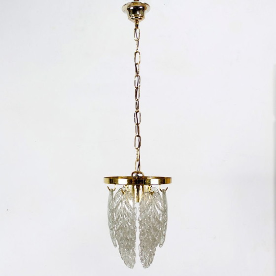 Lámpara de techo italiana de latón y cristal de Murano al estilo de Mazzega, años 70