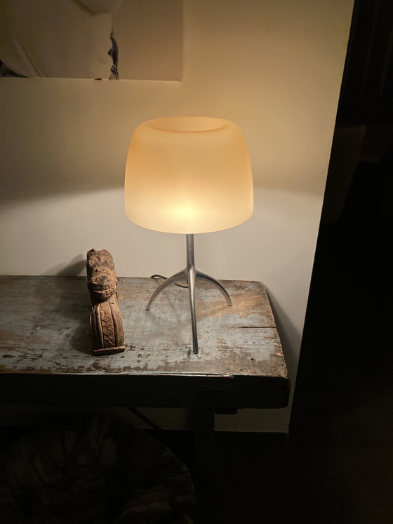 Ilumina tu espacio con la lámpara de mesa Foscarini Lumiere Grande. Esta moderna pieza combina un diseño elegante con funcionalidad, convirtiéndola en el complemento perfecto para cualquier habitación. La lámpara cuenta con una pantalla de vidrio color crema que proyecta una luz cálida y acogedora, ideal para crear un ambiente acogedor.