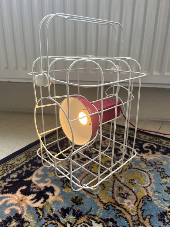 Ilumina tu espacio con la distintiva lámpara Ikea Matali Crasset PS 2017 Kooilamp, una obra maestra moderna que combina funcionalidad con un diseño vanguardista. Esta lámpara única, diseñada por Matali Crasset, presenta una llamativa estructura tipo jaula en metal blanco que alberga una vibrante fuente de luz roja, añadiendo un toque de color y originalidad a cualquier habitación.
