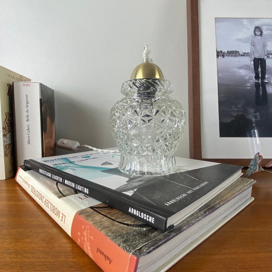 Lámpara portátil antigua de globo en vidrio transparente