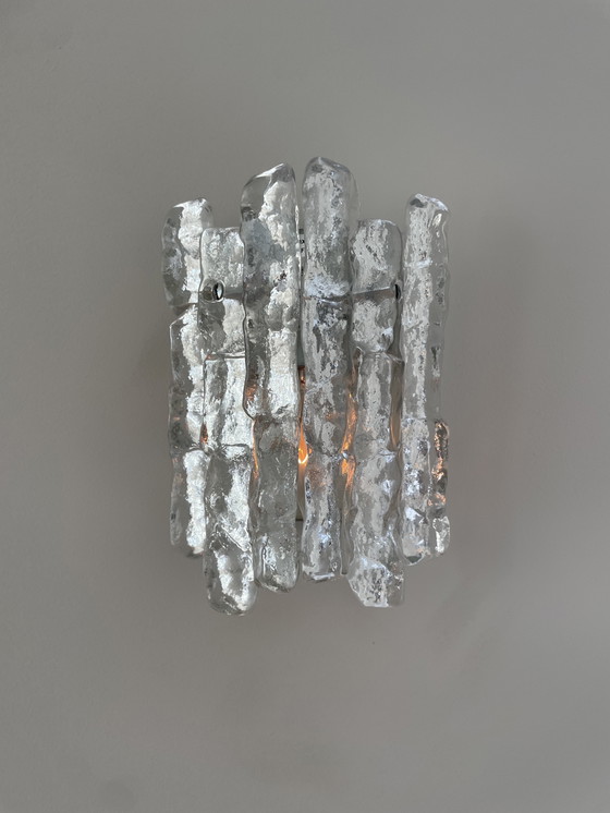 Hermoso juego de apliques de pared de mediados de siglo con piezas de vidrio de hielo de Murano, fabricados por Kalmar, Austria, fabricados alrededor de 1960-1970, ¡muy buen estado!