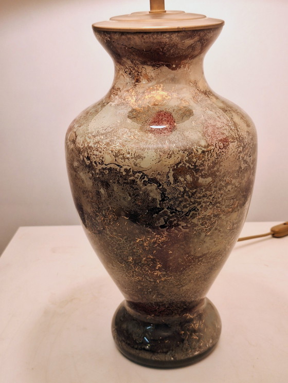 - Base de cristal hecha a mano con varios óxidos metálicos, fabricada en la década de 1970