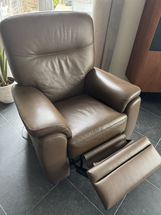 - Tapizado en elegante cuero marrón, este sillón reclinable irradia sofisticación y calidez.