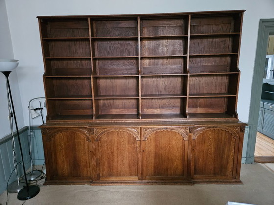 Esta hermosa librería antigua llamará la atención en cualquier habitación. Con sus impresionantes dimensiones y refinados tallados, irradia una elegancia atemporal. Diseñada pensando tanto en la estética como en la funcionalidad, es la opción ideal para exhibir sus preciados libros y objetos decorativos. La librería consta de una sección superior e inferior que se separan fácilmente para facilitar su transporte. Añada un toque de encanto clásico a su interior con esta librería única.