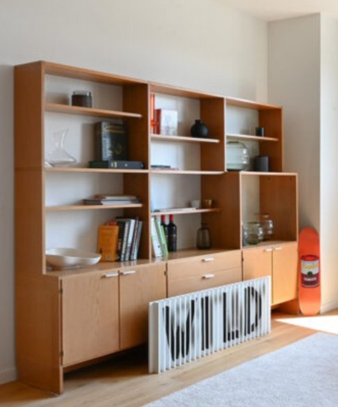 Libreria Cees Braakman "Serie a medida" circa 1960. muy buen estado vintage. Roble claro con tiradores color plata en puertas y cajones