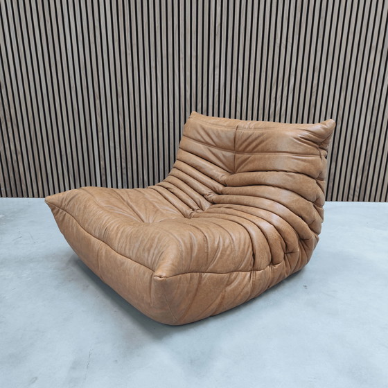 Vintage ligne roset togo (ligeramente usado desgaste) en cuero coñac. Bonito estado.