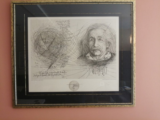 Esta hermosa litografía rinde homenaje a una de las mentes más brillantes del siglo XX. Con una representación detallada y expresiva de Albert Einstein, esta obra de arte captura la esencia de su intelecto y carisma. La litografía está cuidadosamente enmarcada en un elegante marco que realza la obra de arte y aporta un toque sofisticado a cualquier espacio. Perfecta para amantes de la ciencia y el arte, esta litografía invita a la conversación y enriquece cualquier habitación.