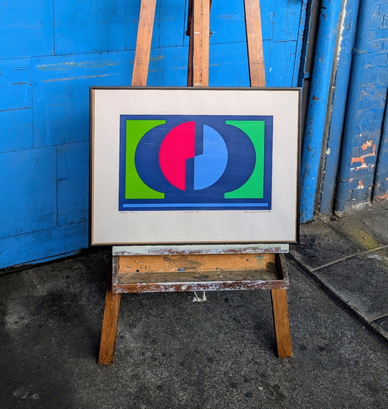 Litografía abstracta y colorida del artista danés Hans August Andersen (1926-2003).