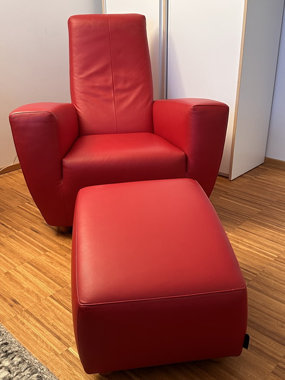 Longa-Sessel con Hocker (rotes Leder) de Gerard van den Berg