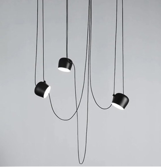 La lámpara colgante pequeña Flos AIM de 3 luces ofrece un diseño elegante y moderno, perfecto para espacios contemporáneos. Sus cables ajustables permiten una colocación versátil, convirtiéndola en una solución de iluminación funcional y con estilo. Fabricada en metal de alta calidad, esta lámpara es duradera y elegante. Ideal para añadir un toque de sofisticación a cualquier habitación.