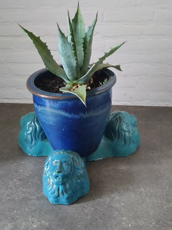 Los leones portamacetas miden 26 cm de largo, 15 cm de ancho y 16 cm de alto.