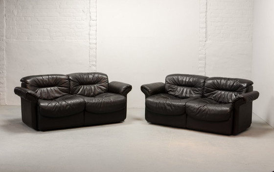 Magnífico sofá de dos plazas De Sede de mediados de siglo, de cuero liso marrón negruzco, DS17. Suiza, década de 1970.