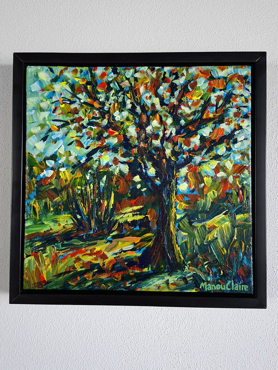 Experimenta la belleza mágica del otoño con esta obra maestra de Manou Claire. Esta pintura captura la esencia de la estación con una vibrante paleta de colores que reflejan el cambio de color de las hojas y las ricas texturas de la naturaleza.