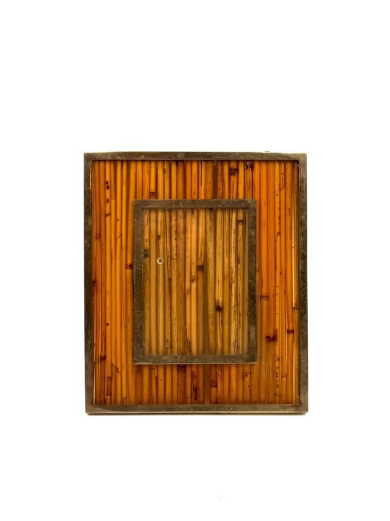 Marco de fotos estilo Hollywood Regency, de bambú y latón, al estilo de Gabriella Crespi, Italia, década de 1970.