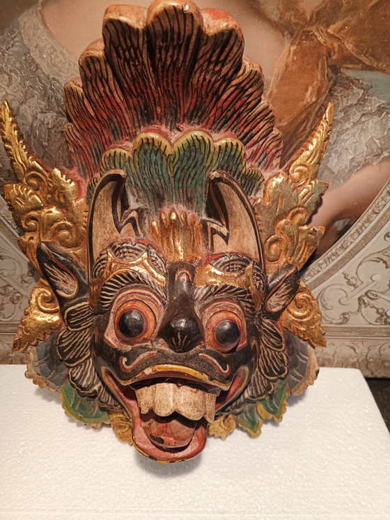 Máscara balinesa del siglo XIX, máscara de lujo hecha a mano.
